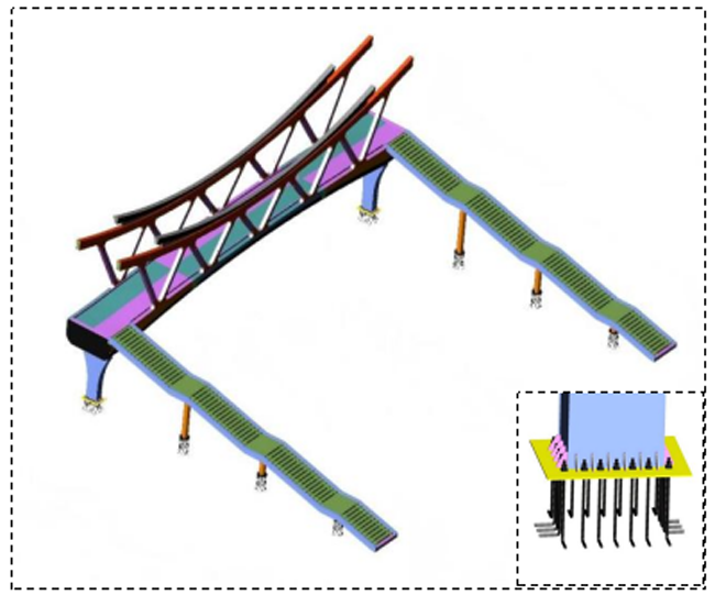 印象濟(jì)南·泉世界作為濟(jì)南西部重要的文旅商業(yè)綜合體,長期面臨人車交織的通行壓力與安全隱患。本次建設(shè)的天橋全長47.3米,橋面寬5米,以“雄鷹展翅”為造型,將橋體結(jié)構(gòu)、材質(zhì)、色彩進(jìn)行巧妙融合,實現(xiàn)人車分流、保障通行安全,成為串聯(lián)不同風(fēng)貌街區(qū)的景觀紐帶。該項目直面商圈出行痛點,選址于人流密集區(qū)域,南北雙側(cè)配備梯道與垂直電梯,全面貫徹全齡友好、無障礙通行理念,全力打造一座讓市民安心、讓城市暖心的“連心橋”。